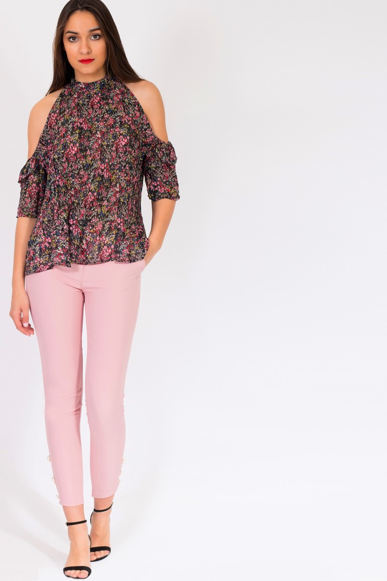 PLEATED FLORAL PRINT TOP